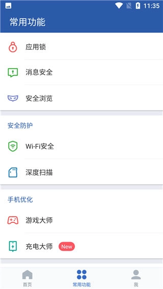 2、若要使用深度扫描功能,需点击常用功能,在常用功能的安全防护板块中方可找到。