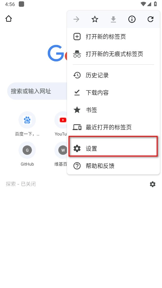 2. 轻点右上角的菜单按钮,唤起谷歌浏览器的菜单。