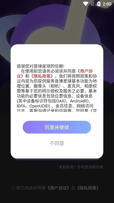 1. 开启音律星球,点击同意相应权限