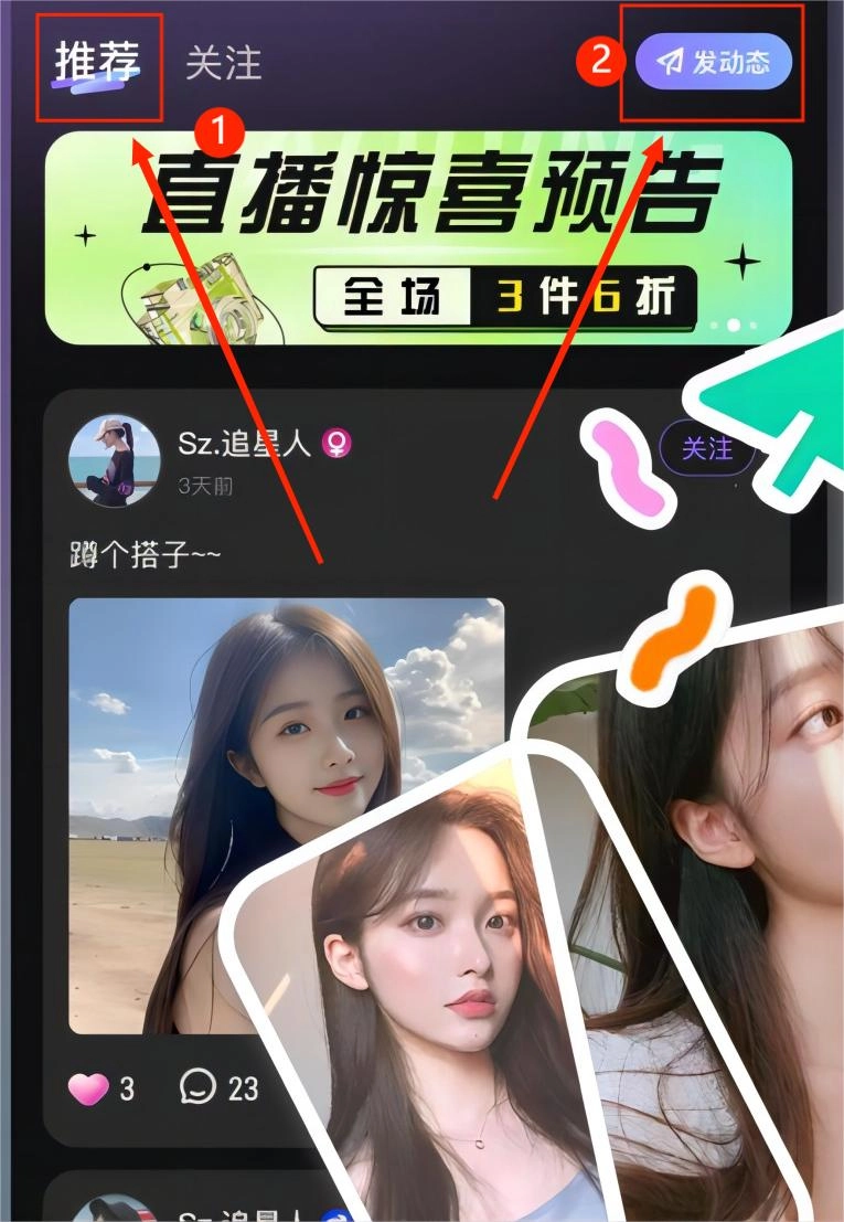 1. 开启音律星球,于推荐页面处,点击右上角的“发动态”。
