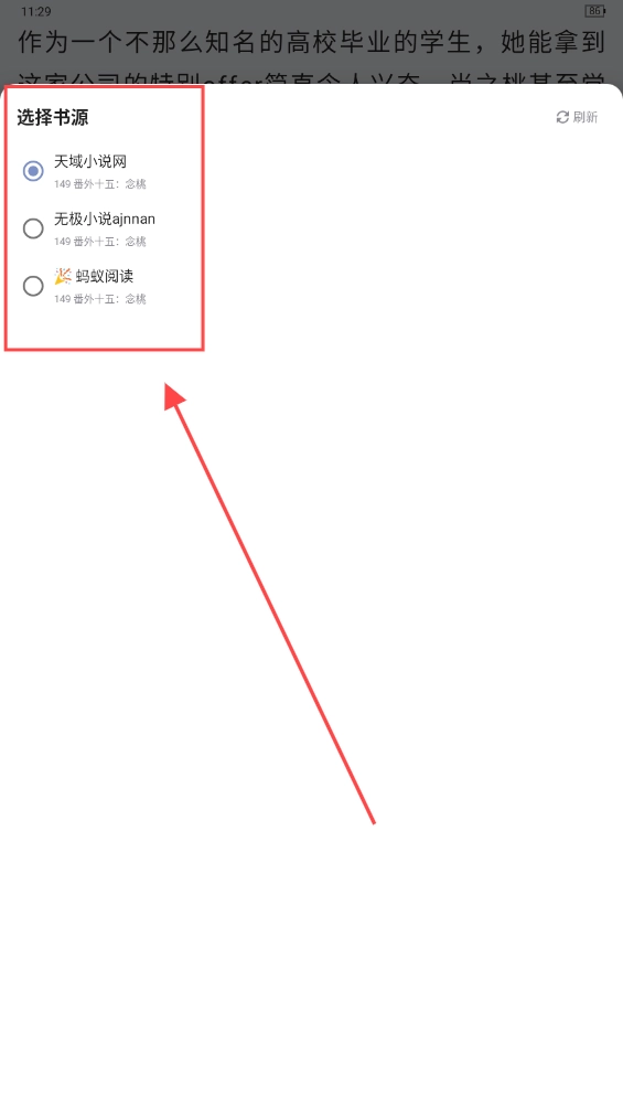 在阅读小说的过程中若要换源,只需在小说阅读界面点击“换源”,系统便会依据网络状况自动切换小说源,从而继续阅读小说。