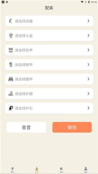 兵器、头盔、战甲、腕部护甲、腰部护甲、护腿装备、护石
