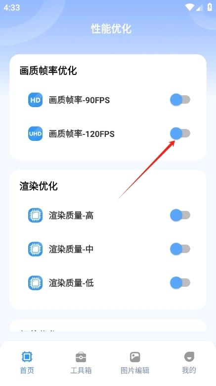 4、【画质帧率】低配手机一键就能开启120帧率!