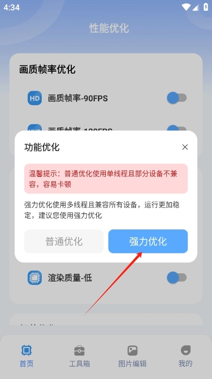 2. 挑选优化模式,推荐选择强力优化。