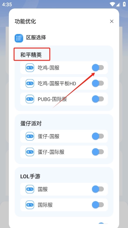 3、挑选游戏与区服,在此以《和平精英》为例。