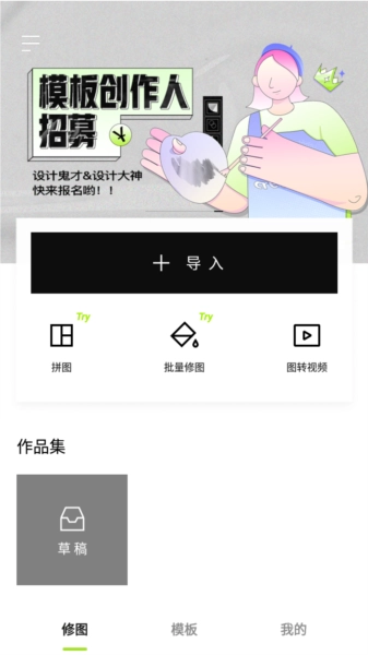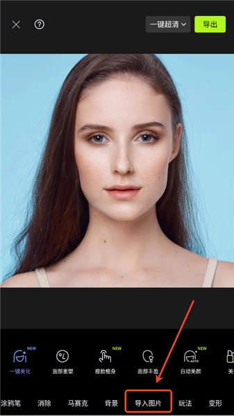 2. 滑动下方栏目,寻找到导入图片的功能。