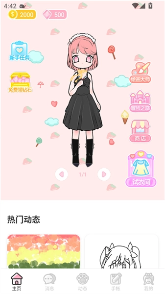 2. 角色形象创建完成后,进入“主页”,就能看到自己的角色形象以及热门动态。