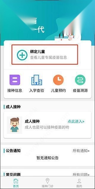 1. 打开软件后,点击“儿童接种”选项。