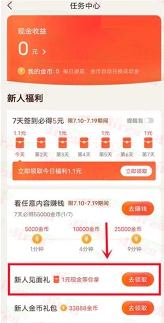 2、点击左上角的红包图标,进入后领取1元新人红包。