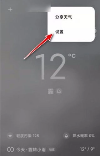 1. 打开天气应用的设置界面,轻点“+”图标。