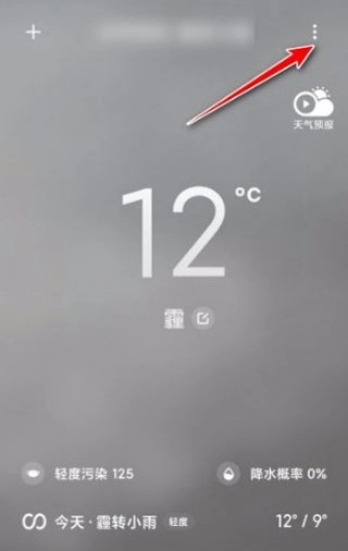 1、开启小米天气应用,轻点右上角的‘…’图标。