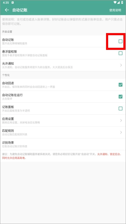 3、进来之后勾选【自动记账】,支付成功或进入账单详情,好好记账会以弹窗的形式展示账单信息,点击保存即可记账