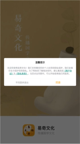 2. 打开易奇文化软件,随后同意其服务条款。
