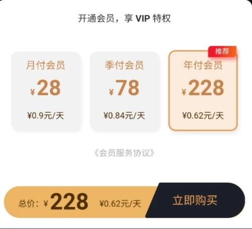 确认开通后,你能够选择不同时长档位,既能够先尝试开通一个月,也能够直接选择年付,年付的话会更加省钱哦!