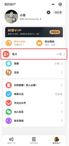 1、进入螃蟹通告平台进行登录操作,随后创建属于自己的专属名片。
