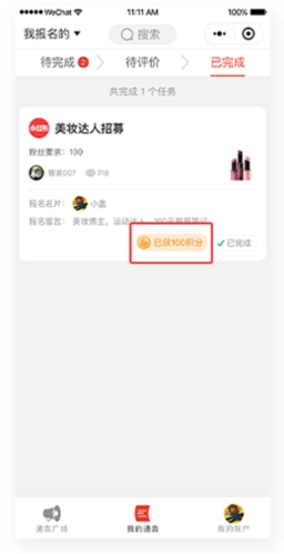 完成一项任务就能收获100积分哟,这些积分可以用来抽奖或者兑换奖品呢~