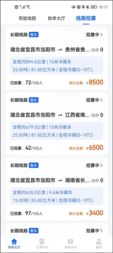 3、司机们在这里不用担心没有订单,打开首先中,可以看到路线招募功能,这里同样提供了大量的招募订单。