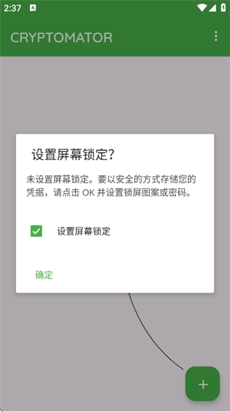1、安装完成并打开后,首先会弹出一个询问对话框,询问是否设置屏幕锁定。