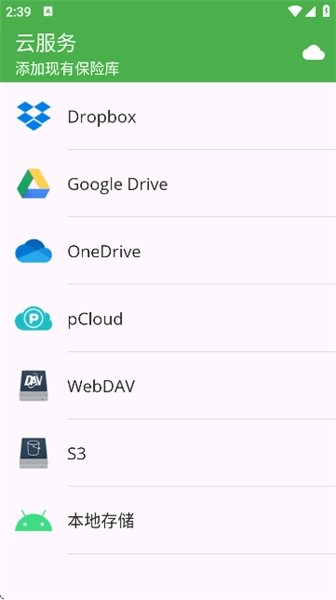 3、挑选存储位置,既能够对接云服务(例如Google Drive ),也可以选择本地存储,选定后为保管库取名。