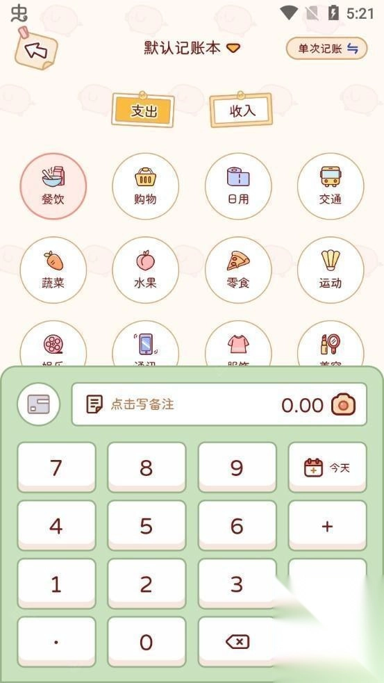 2、采用可爱舒适的画面打造,可以在这里记录自己的各种收入与支出。