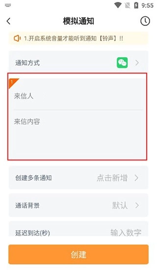 4、填好来信人相关信息,包括来信内容、延迟时间以及通话背景。