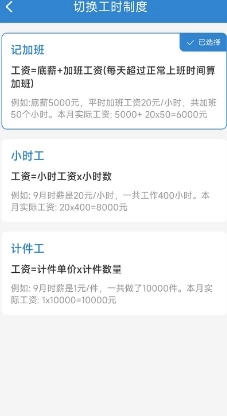 提供贴心的自定义功能,可灵活设置基本工资与加班薪资。