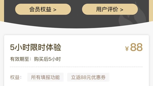 如果我们想在使用圆梦志愿手机版时查看完整数据,就需要开通会员。开通会员有两种选择,88元可使用5小时,518元则能使用到2022年10月1日。