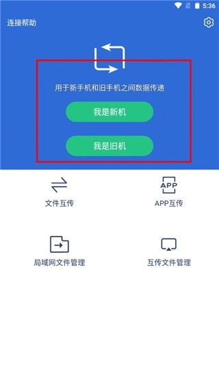 1. 在本站点击安装并打开,确认新手机与旧手机连接的是同一WiFi后,进入软件,先用旧手机点击“我是旧机”。