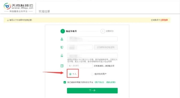 2、按照所需注册的账号类型,点击选择个人账号,接着依据提示信息完成填写以进行注册(*标记项为必填内容)。