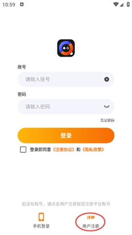 5、若已有账号,直接输入账号密码登录;若没有账号,就选择注册。