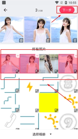 2、随后你会瞧见一个库,从中挑选你想拼接的照片,接着点击【下一步】。就这么简单,无需繁琐操作!