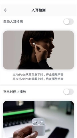 2、第一个功能,耳机入耳检测,轻松实现耳机佩戴与摘除时的自动播放与暂停。