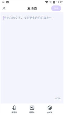 2、输入你想要发送的文字,你能够自主选择进行配音、添加图片,还可以@好友。