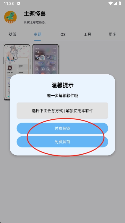 2、系统会提示我们是选择付费解锁还是免费解锁,在此建议大家选择免费解锁。