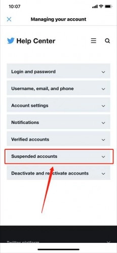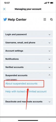 5、点击「关于封禁账号 About suspended accounts」(此句意思明确,若要修改可稍作表达调整)5、轻点「关于封禁账号 About suspended accounts」