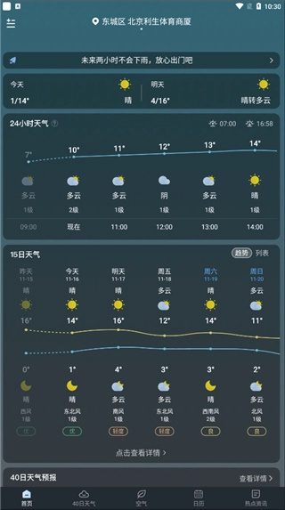 4、轻点底部的“40日天气”,就能查看该城市未来40天的天气状况。