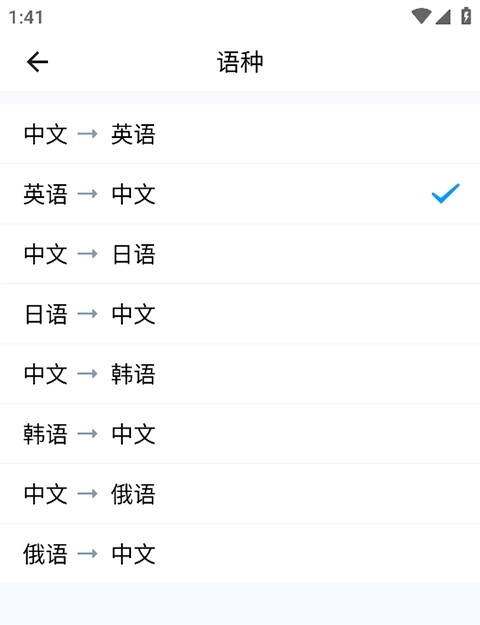 2、可选择英语、日语、韩语、俄语等语言与中文进行相互翻译。