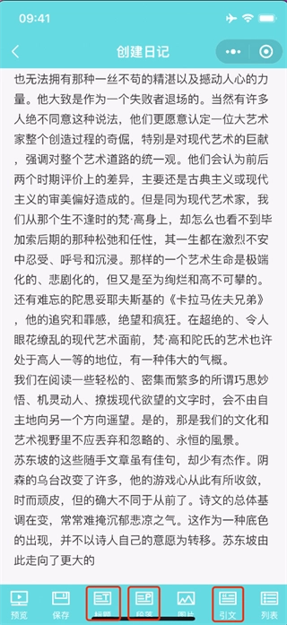 5、在所有能够输入文本的板块,如标题、段落、引文等,都可对文本样式进行修改。