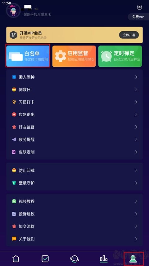 2、在“白名单”里,能够点击添加在禅定时可使用的应用。