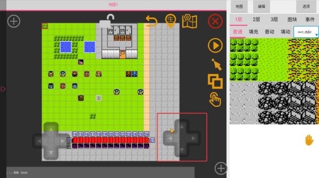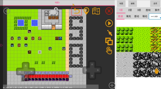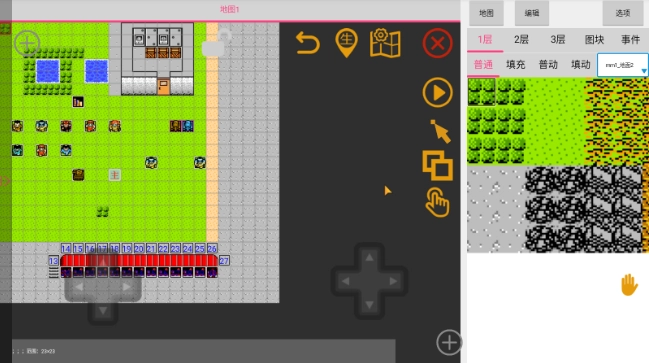 4、通过双指操作能够实现放大缩小功能,手指轻轻点击地图图块即可完成选中,此外,还能借助左边的方向键精确选中特定的某一个图块。