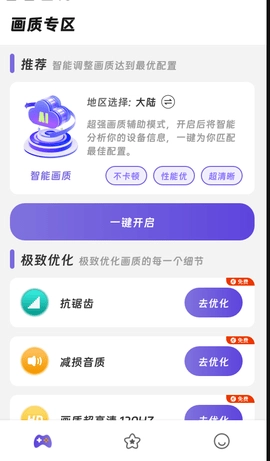 2、在主界面,用户能轻松找到游戏画质优化等功能的入口,操作简便,易于使用。