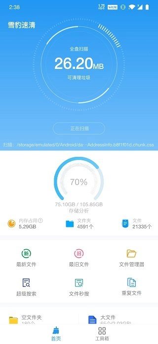 雪豹速清v2.4.0解锁全高级版一款那不错的手机文件垃圾清理工具,释放手机内存,提升手机的使用流畅度,自动扫描功能,一键清理垃圾文件,感兴趣的朋友快来吧!