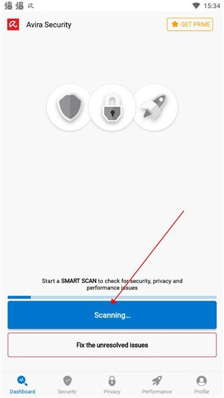 1安装好软件后,点击打开,在主页中选择“scanning”进行病毒扫描。