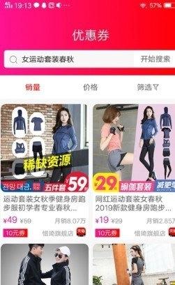 2、疯抢排行:手淘商品中,90%都设有优惠券,每日实时更新的优惠券数量超3000万张。