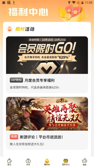 4、最后,在福利中心还能领取各类游戏福利呢。