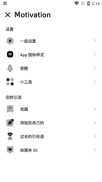 Motivation Motivation是一款专注于日常激励的语录软件,涵盖丰富多样的励志语句类型,无论是关乎生活感悟、倡导爱自己,还是针对健身锻炼的鼓劲,亦或是缓解社交焦虑的话语,应有尽有。这些内容能给予使用者强大的激励,让大家在最为沮丧的日子里,以及最渴望鼓励的时刻,随时为自己加油打气。不仅如此,用户还能够根据自身需求自定义激励金句,并可将这些金句收藏起来,或者分享给自己的好友。此外,在这款软件中,用户每天都能规划个人日常,对学习或工作进行打卡。有此类需求的用户,赶快行动起来使用吧!