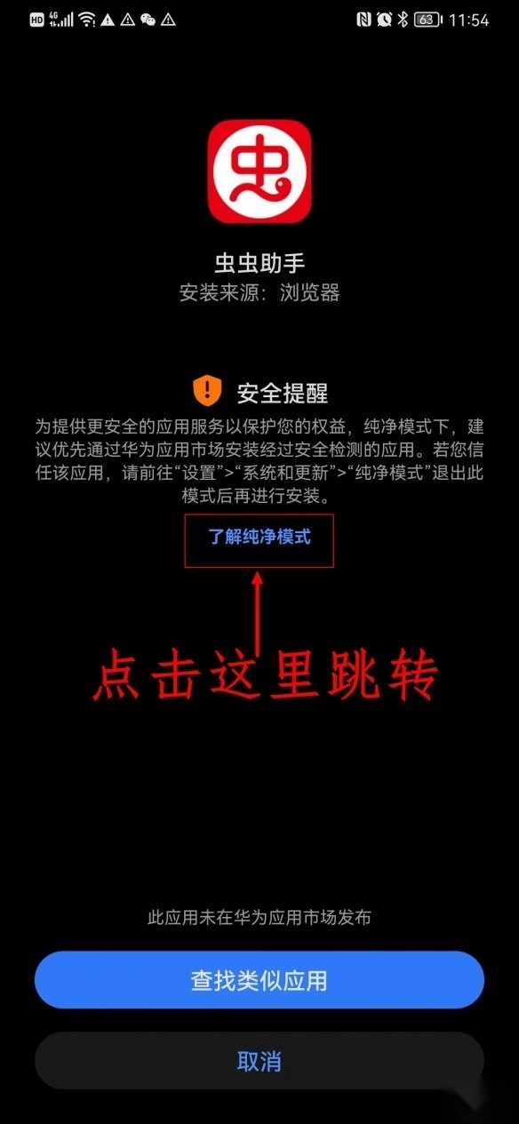 那么华为手机鸿蒙系统纯净模式下该如何安装虫虫助手呢?