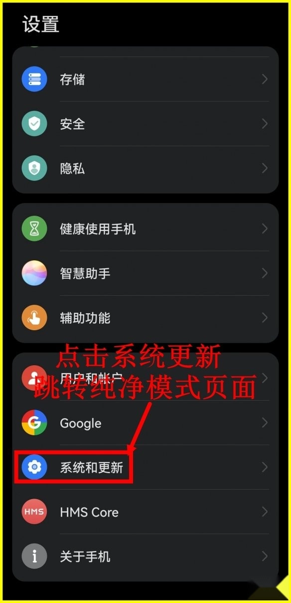 1、进入手机设置页面,点击(系统和更新)。