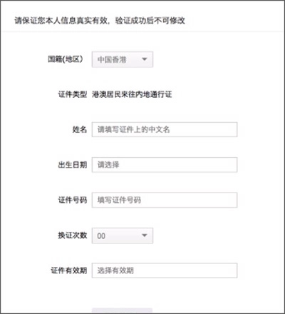 港澳用户可提供:港澳居民来往内地通行证(只提交基本身份信息面即可,纸质通行证或塑料卡两种)