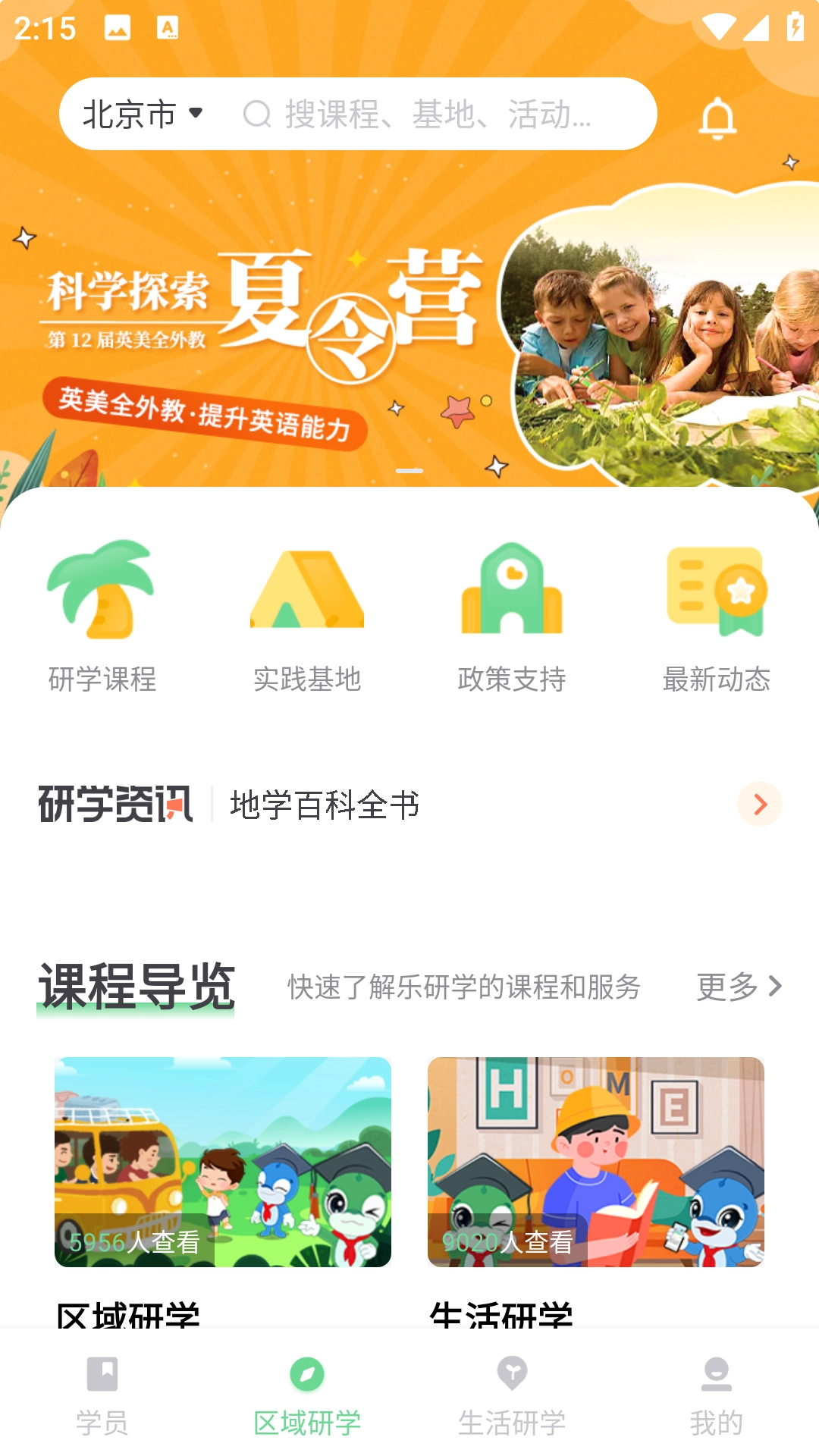 2、登录账号之后,点击“区域研学”,就能查看各地的研学基地。